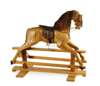the varnished carved body with horse hair mane and tail and leather tack, raised on turned supports