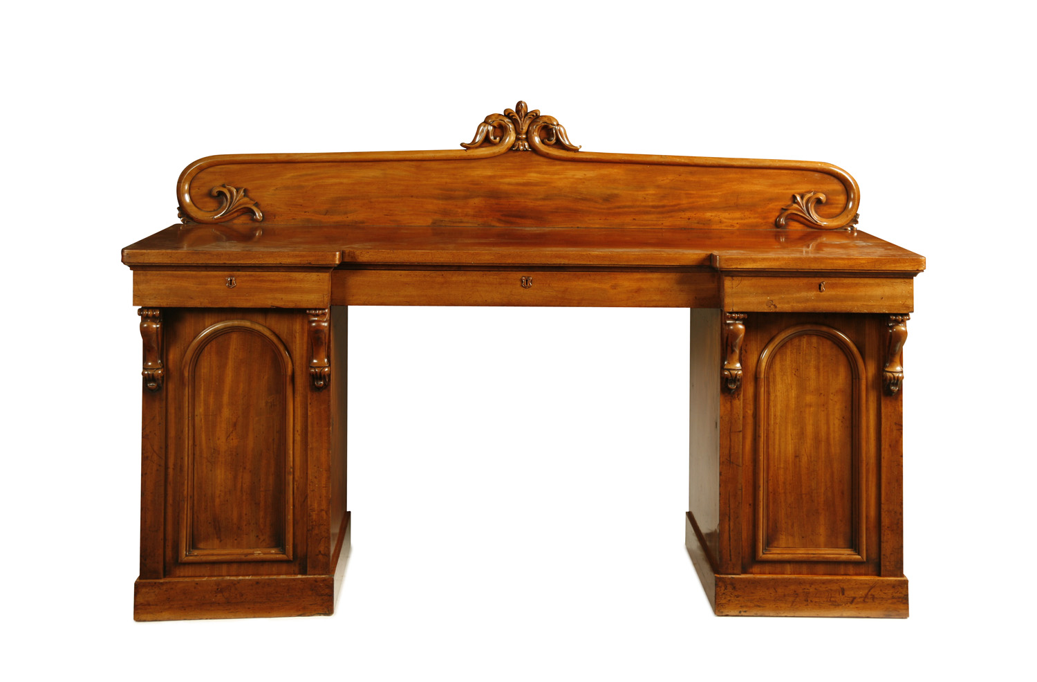 MAHOGANY INVERTED BREAKFRONT TWIN PEDESTAL SIDEBOARD