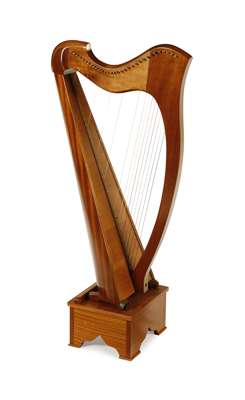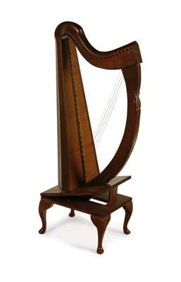 each raised on stands, one with decorative carved detail to column, the first, thirty string, 94cm high, 53cm deep; the second, thirty two string,104cm high, 61cm deep (2)