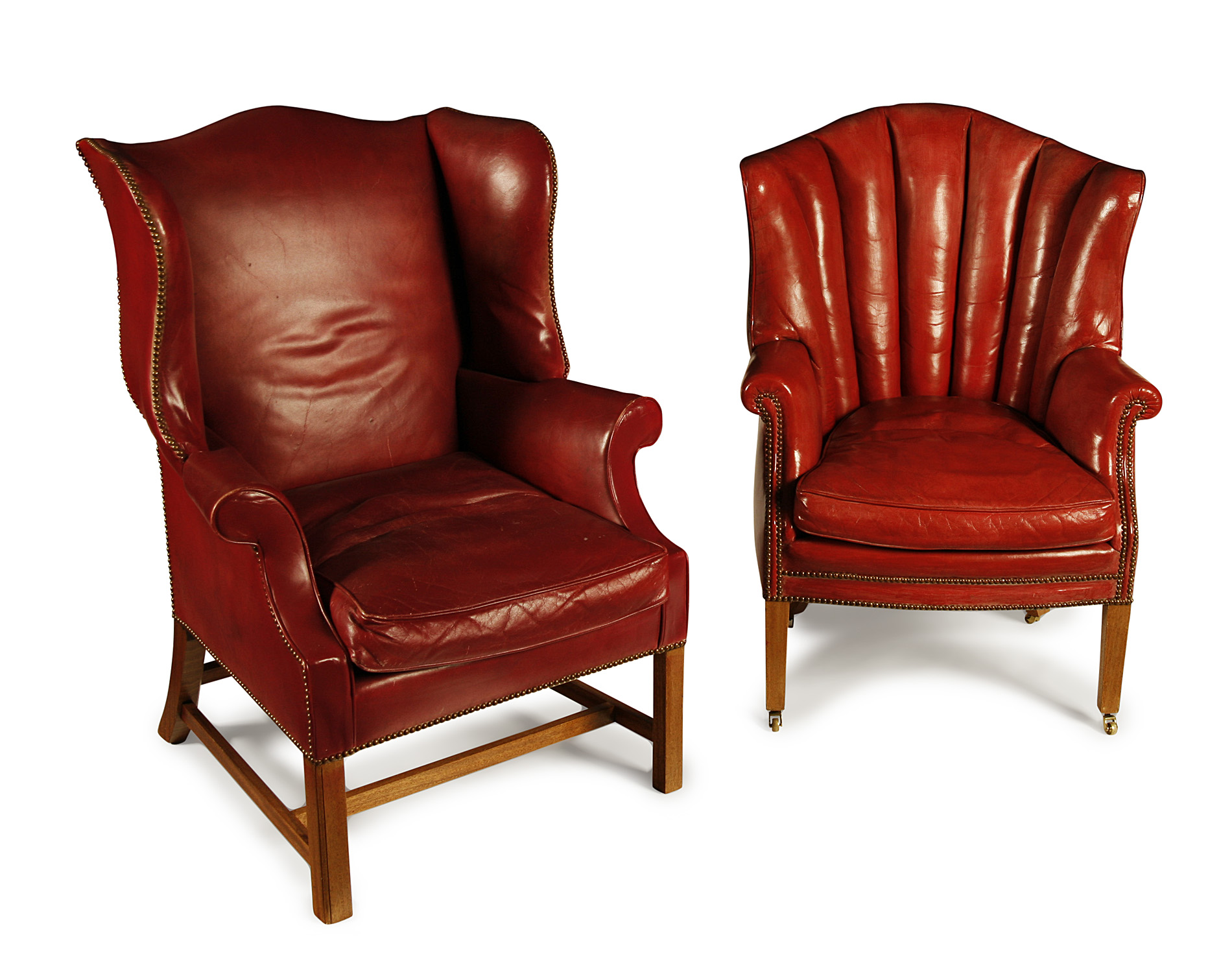 TWO GEORGIAN STYLE LEATHER ARMCHAIRS †