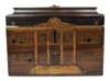 of sarcophagus form, the front surface depicting a house facade, below the hinged canted lid, opening to reveal three void compartments