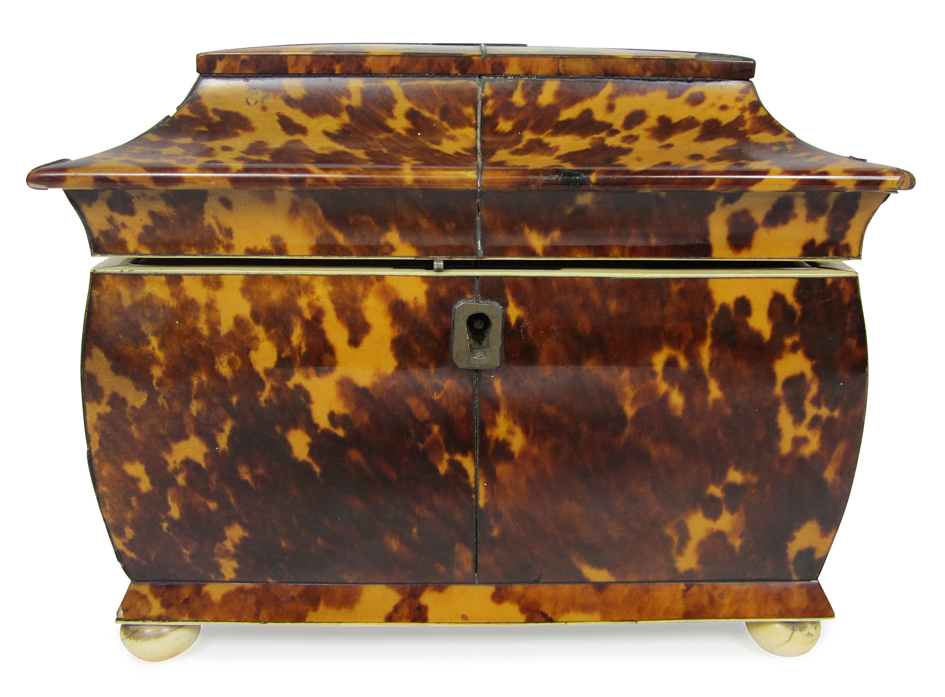 REGENCY TORTOISESHELL VENEERED TEA CADDY