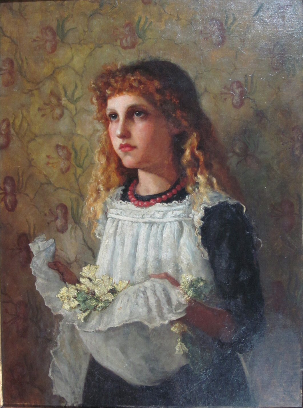 PORTRAIT OF A GIRL GATHERING PRIMROSES