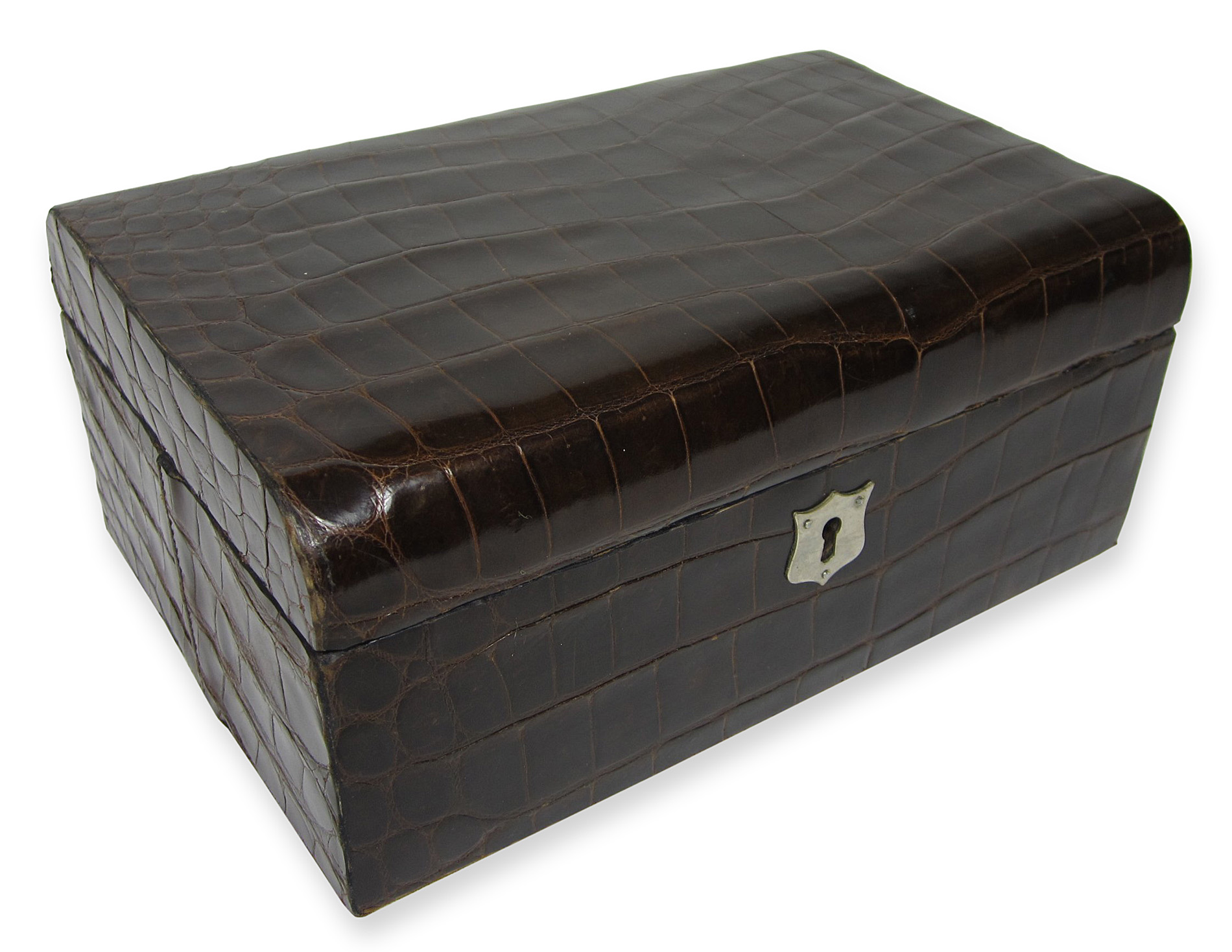 EDWARDIAN CROCODILE SKIN JEWELLERY BOX