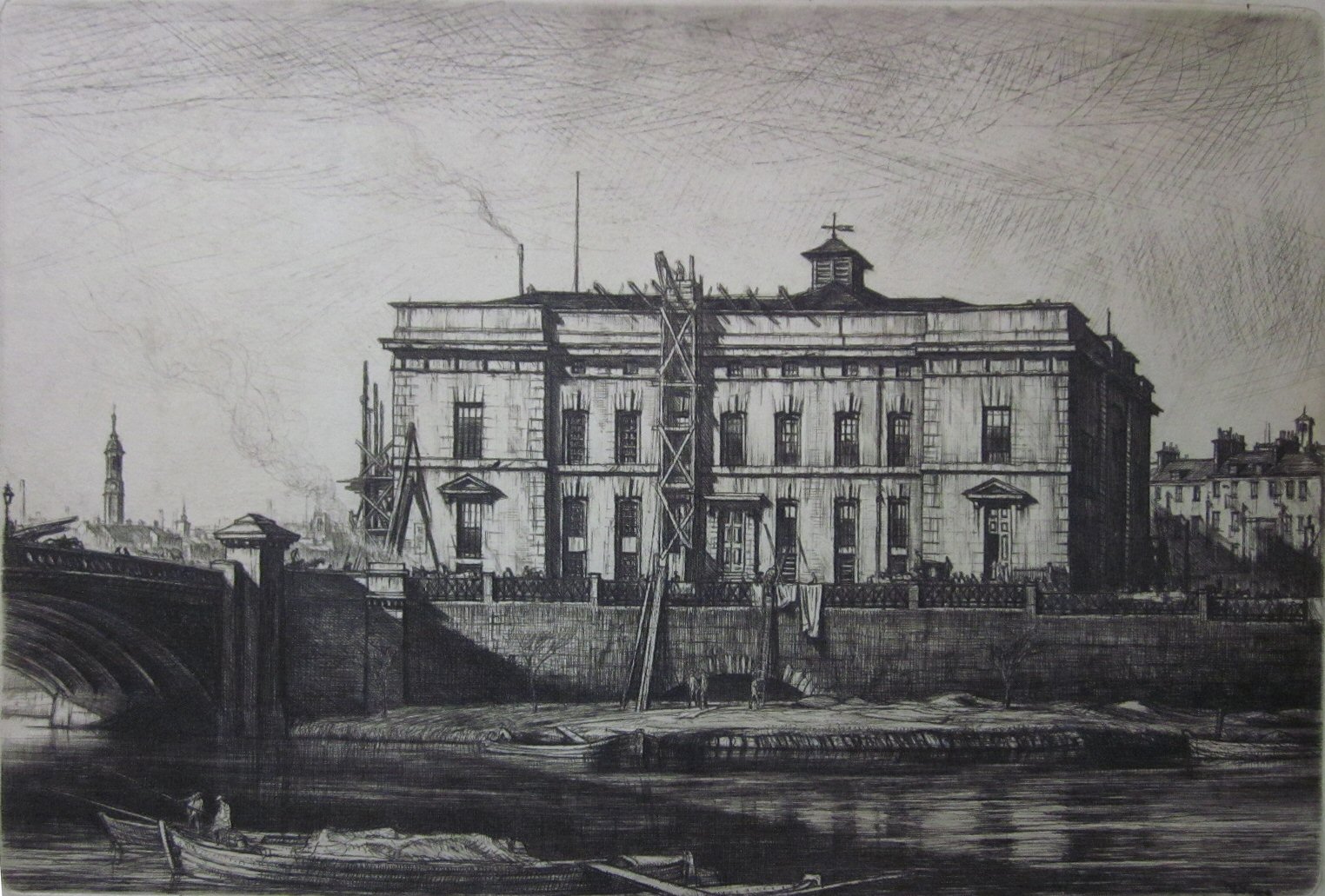 Sir Muirhead Bone, 'Small Landscape: Houses, Peterfield', 'The Old Justiciary Courthouse, Glasgow', 'Oxfordshire'; 2 x early photographs of the Scottish landscape, indistinctly signed; Sir D. Y. Cameron, 'On the Ourthe', 'Robins Court', 'The Sound of Kettera'; James McBey, 'Zaandijk'