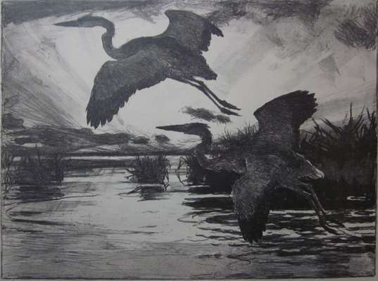 'Yellowlegs and Sunlight', signed in pencil to margin; 'The Punter', signed in pencil to margin; 'Blue Herons', signed in pencil to margin