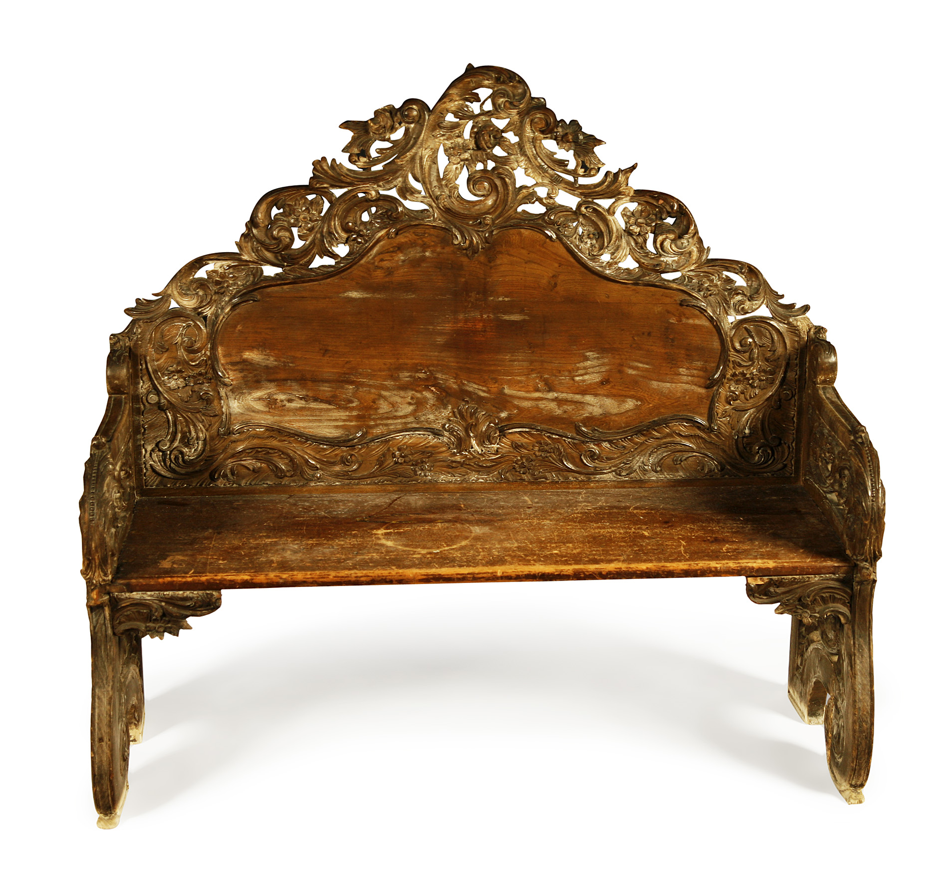 ROCOCO STYLE CARVED WALNUT HALL BENCH