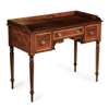 the three quarter galleried rectangular top above a central drawer, flanked by short drawers, raised on turned legs