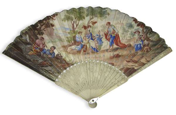 ITALIAN HAND PAINTED VELLUM AND IVORY MOUNTED FAN