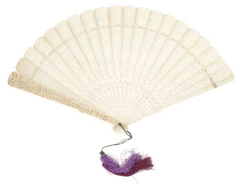 CHINESE CANTON CARVED IVORY BRISE FAN