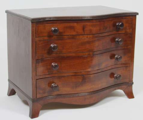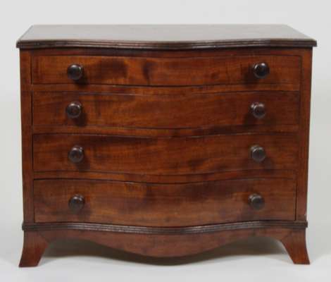 MINIATURE SERPENTINE MAHOGANY CHEST OF DRAWERS