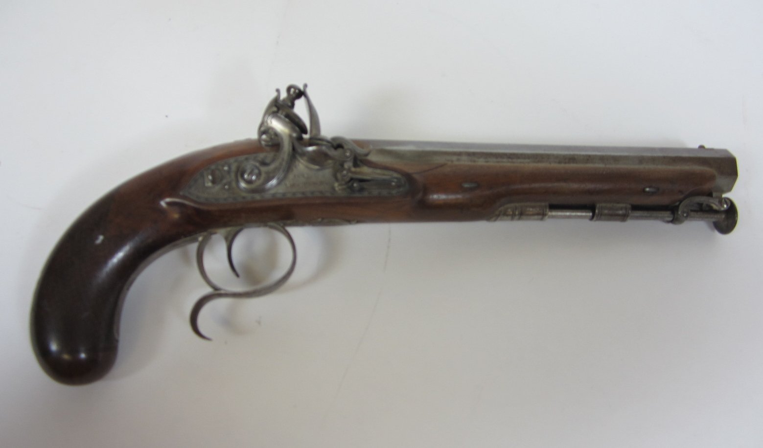 12 BORE FLINTLOCK OFFICER'S BELT PISTOL, SIGNED H.W. MORTIMER