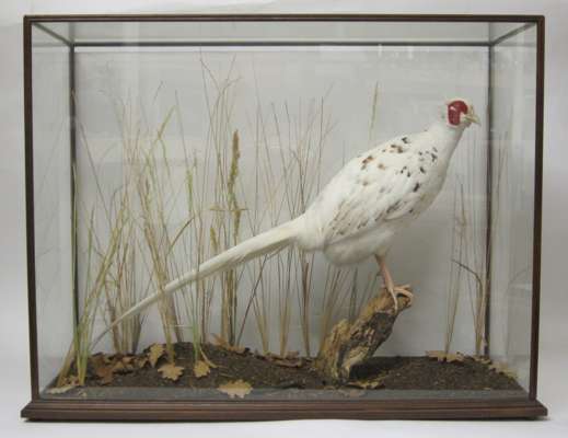 CASED TAXIDERMY LEUCISTIC CHINESE RINGED PHEASANT