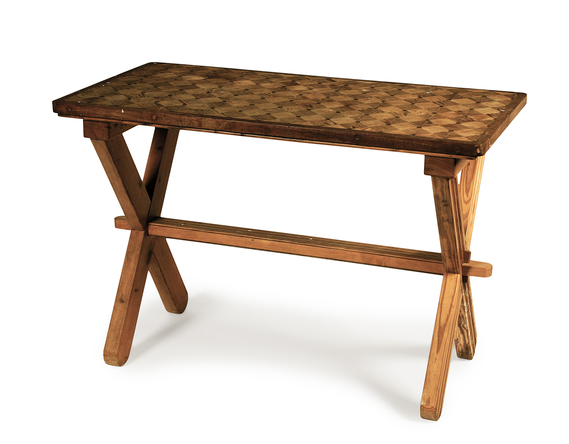 NEO-GOTHIC PARQUETRY PINE TRESTLE TABLE