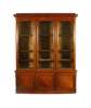 the moulded cornice above three glazed doors enclosing adjustable shelves, over three panel doors, raised on a plinth base