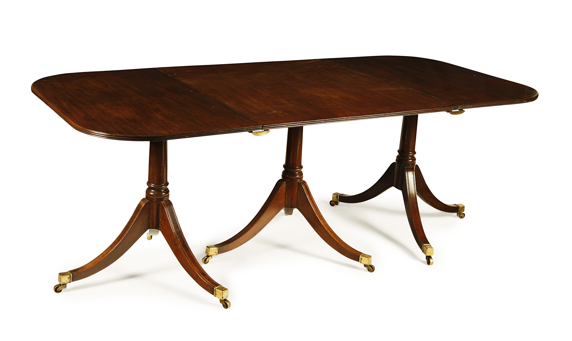 GEORGIAN STYLE MAHOGANY TRIPLE PEDESTAL DINING TABLE