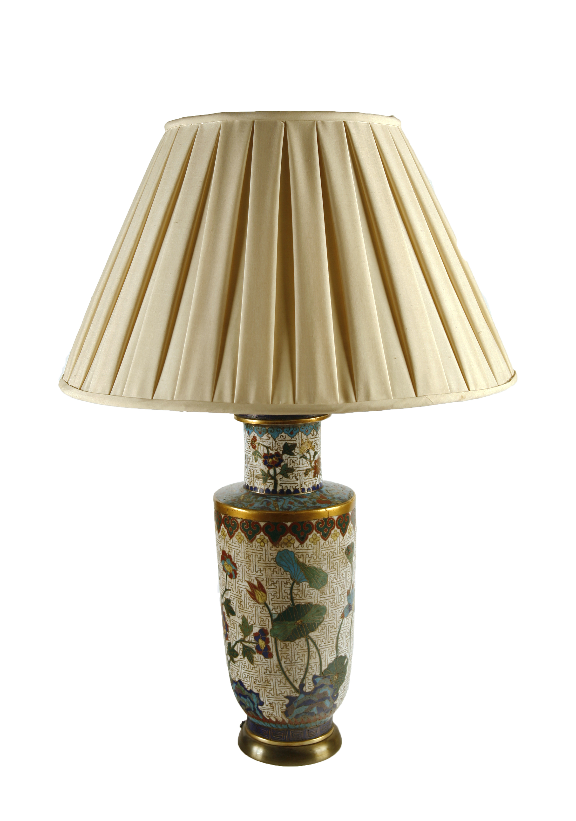 of transitional shape with brass mounts, depicting foliate motifs, converted to a lamp