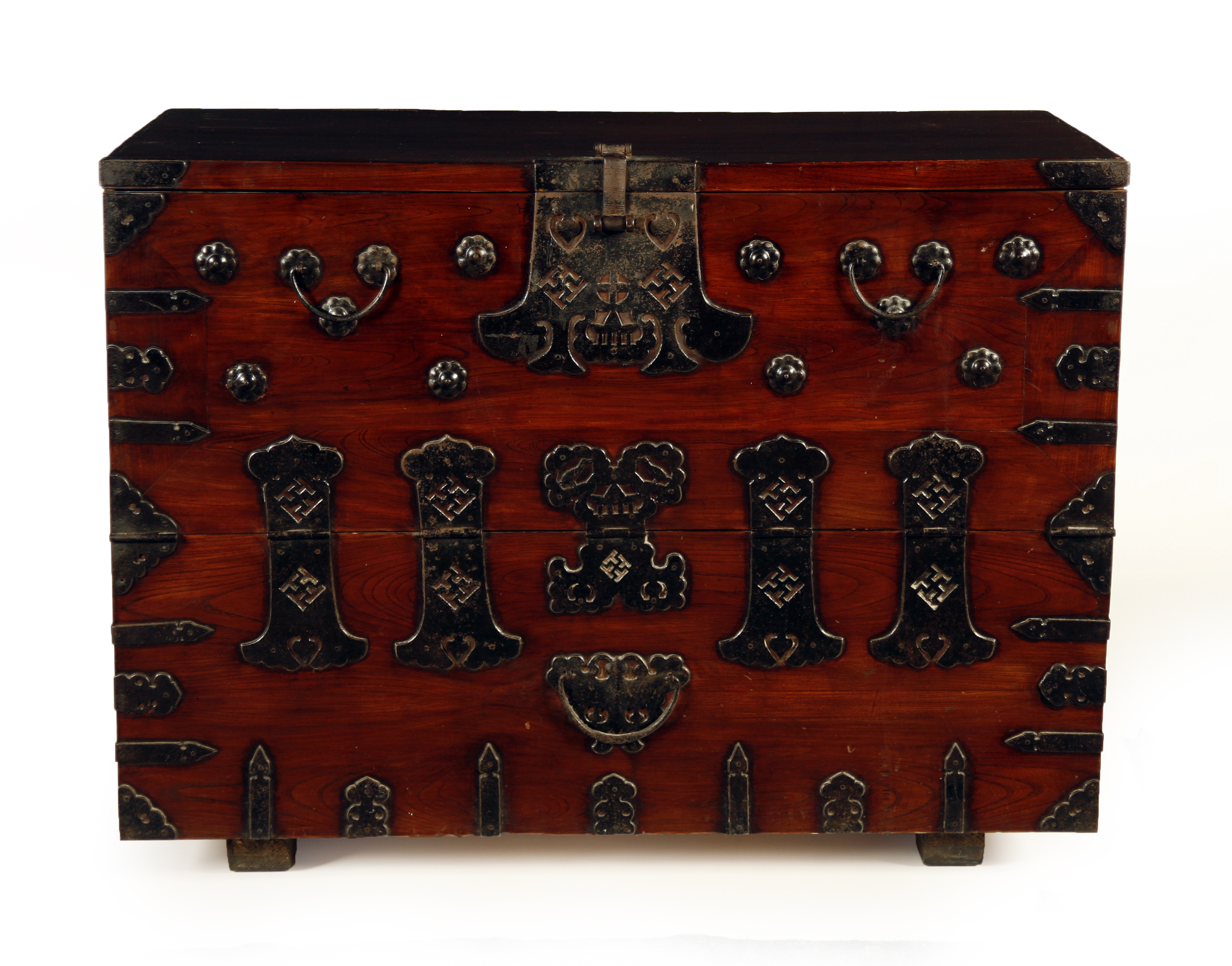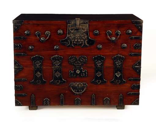 STAINED PINE AND IRON BOUND KOREAN CHEST