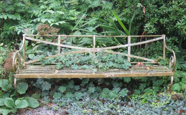 VICTORIAN OVER PAINTED WROUGHT IRON BENCH