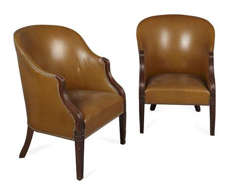 PAIR OF LOUIS XVI STYLE MAHOGANY FRAMED LEATHER BERGERES