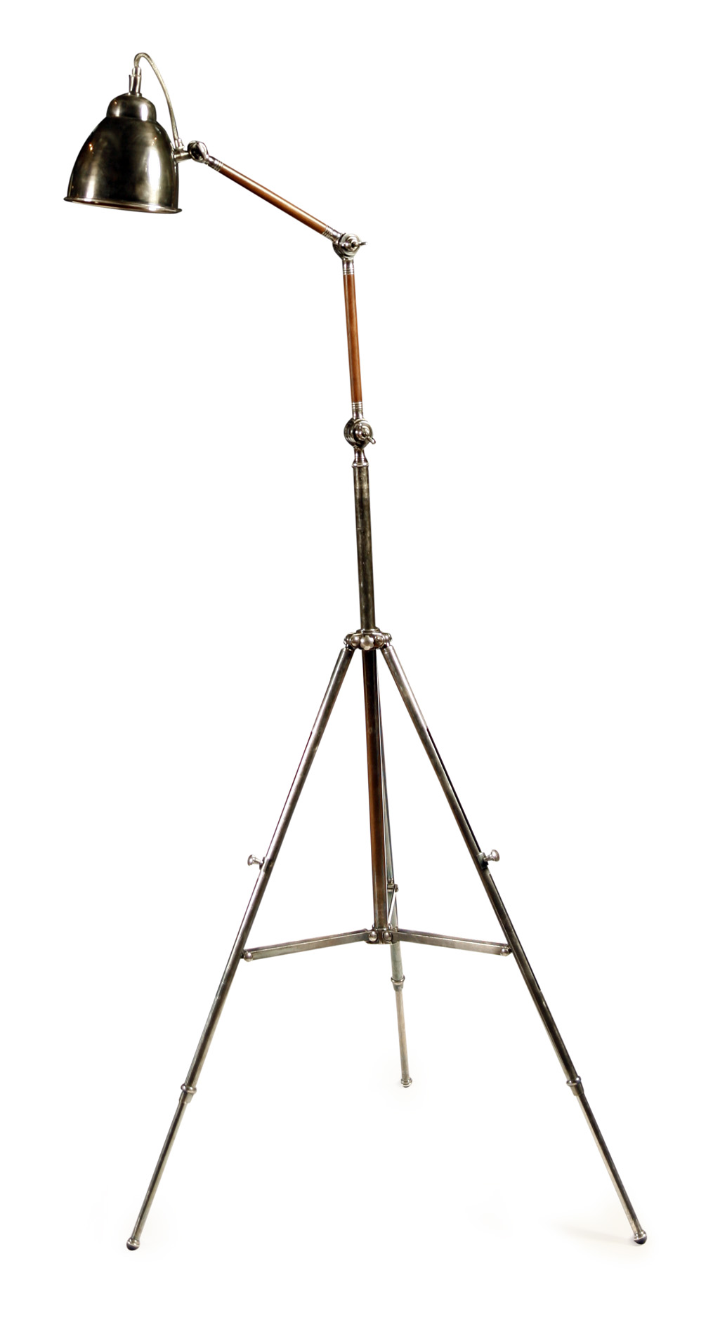 CHROME AND MAHOGANY ANGLE POISE STANDARD LAMP