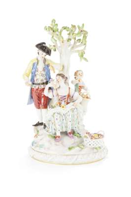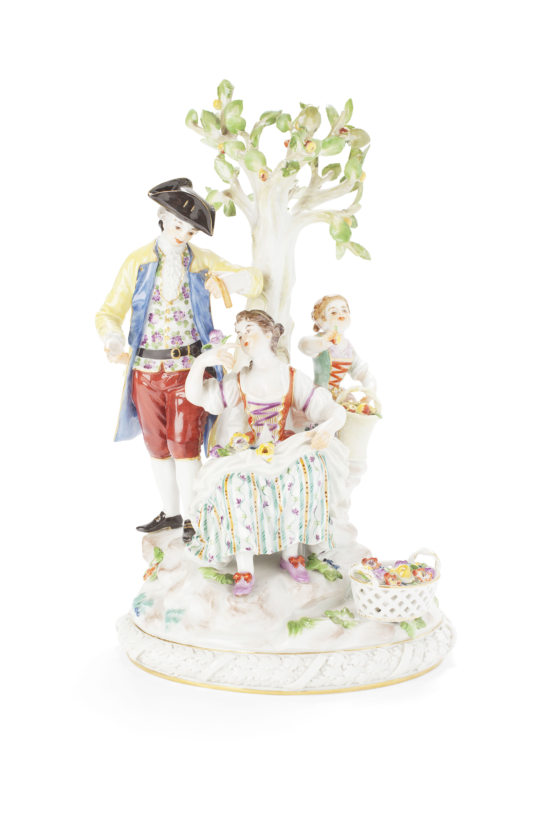 MEISSEN GROUP OF FIGURES BY AN APPLE TREE