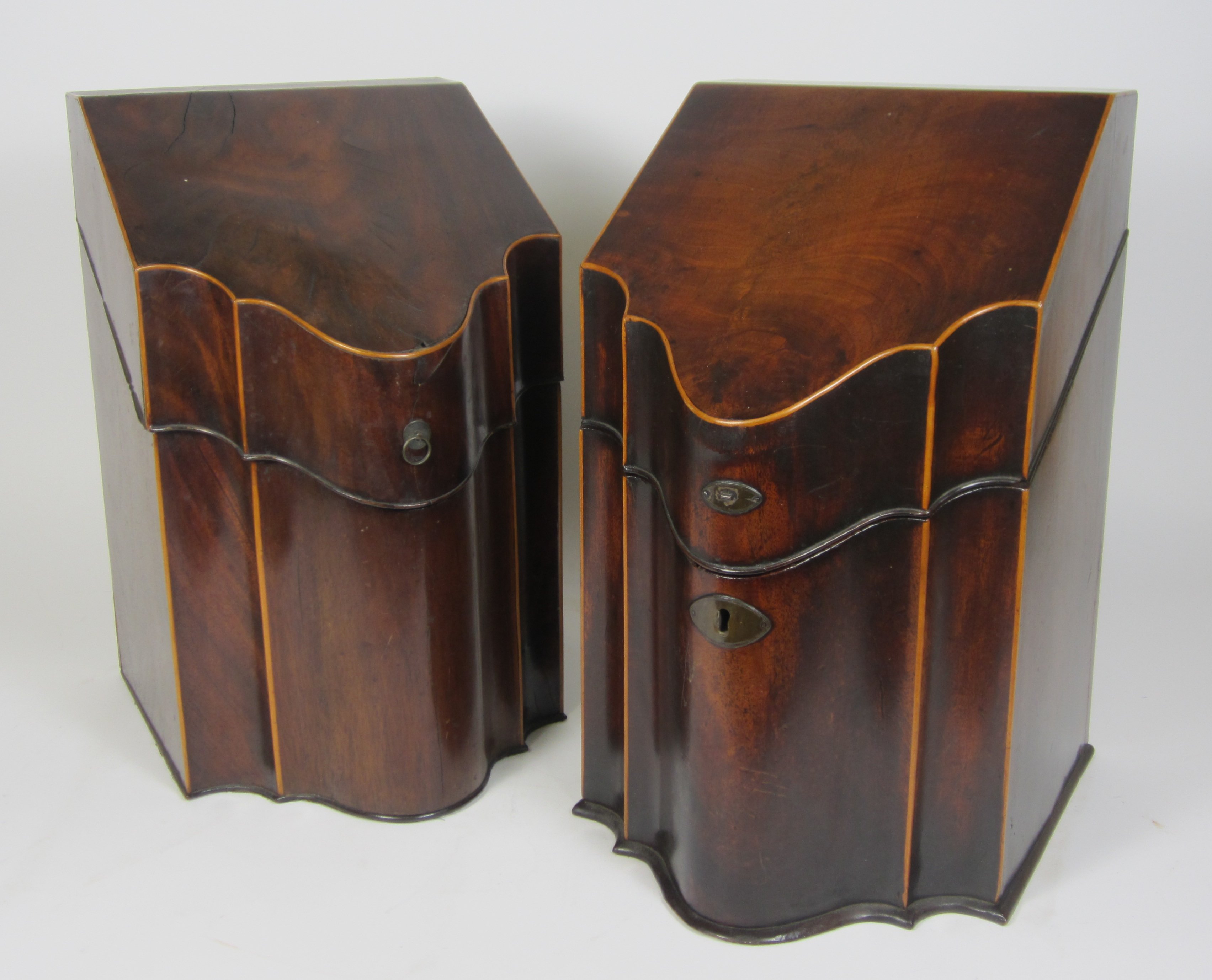 NEAR PAIR OF GEORGE III MAHOGANY KNIFE BOXES