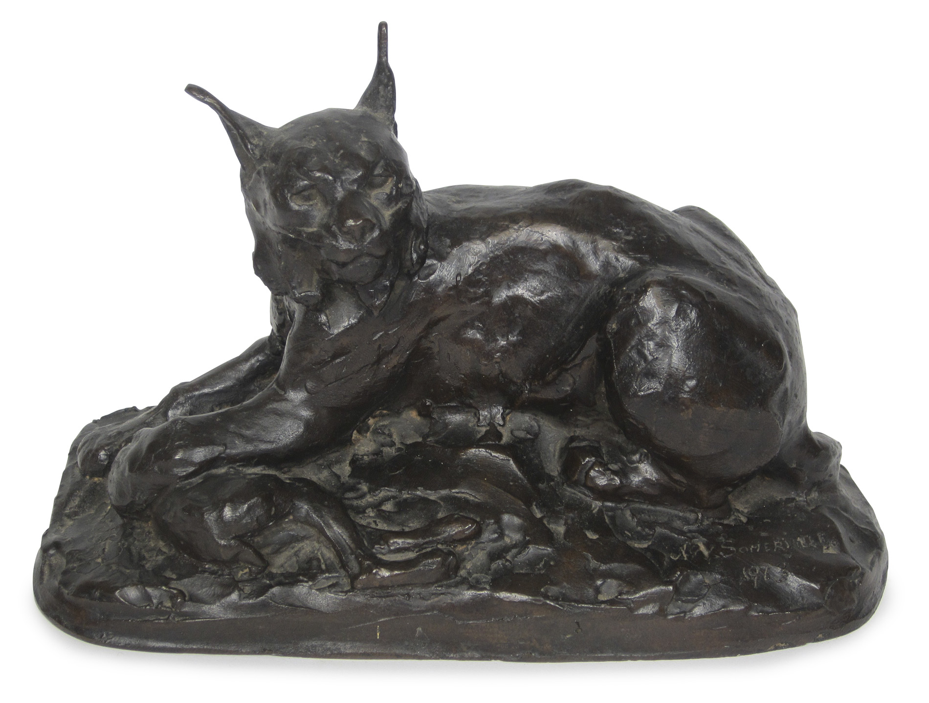BRONZE FIGURE OF A LYNX, SIGNED SOMERVILLE