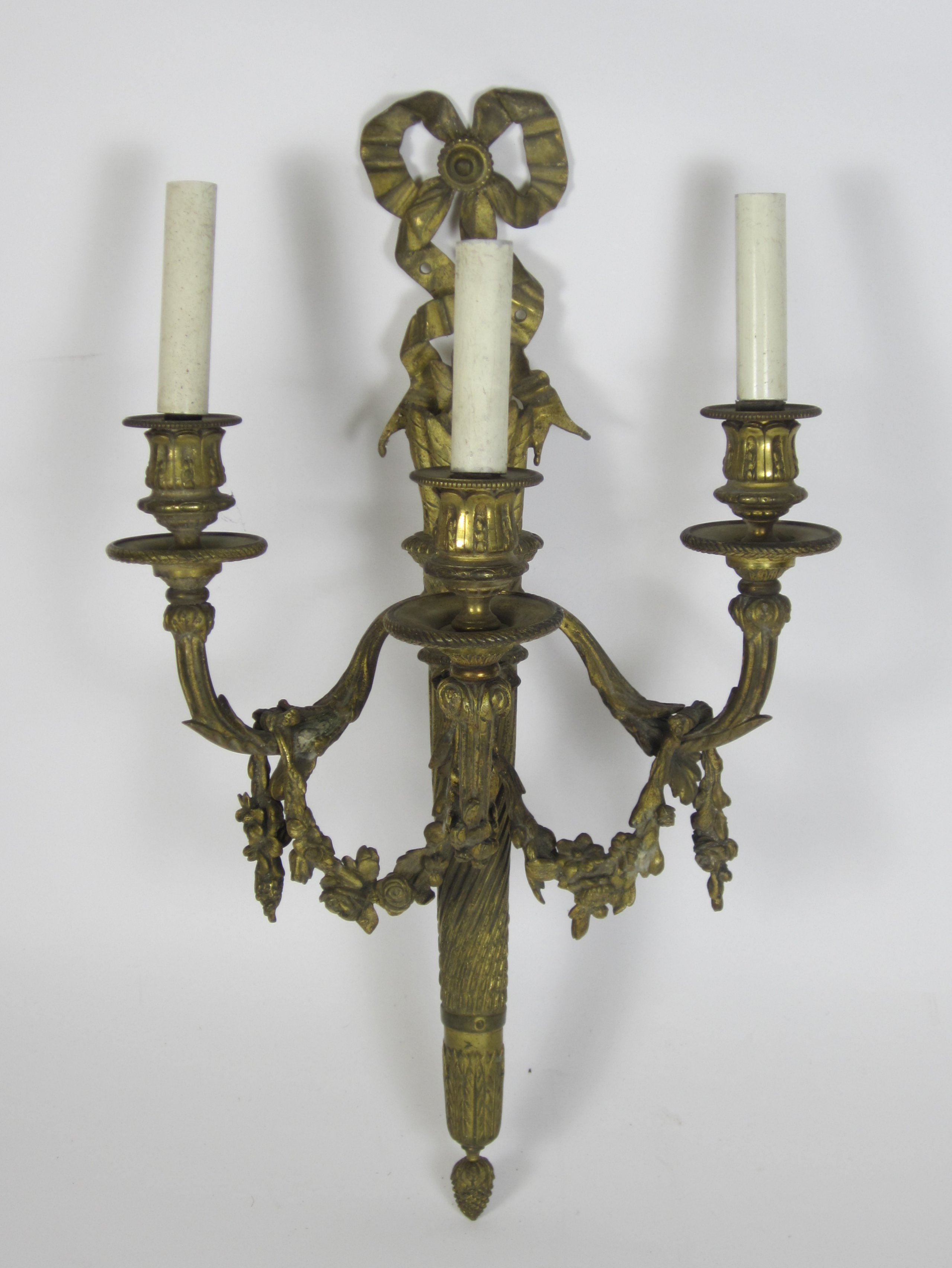 PAIR OF LOUIS XVI STYLE GILT BRONZE WALL LIGHTS