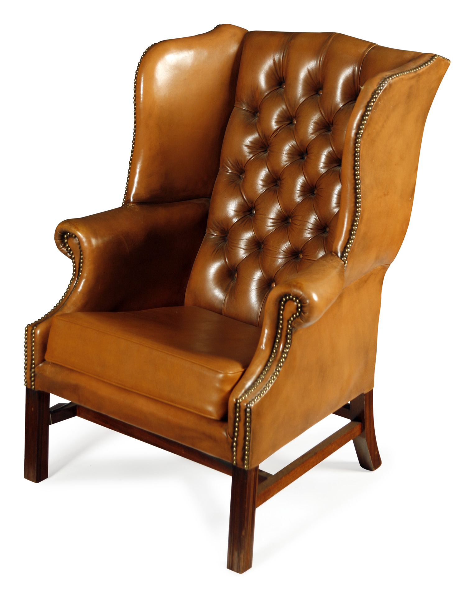 the shaped back and out scrolled arms above a loose cushioned seat, raised on moulded square legs, united by stretchers