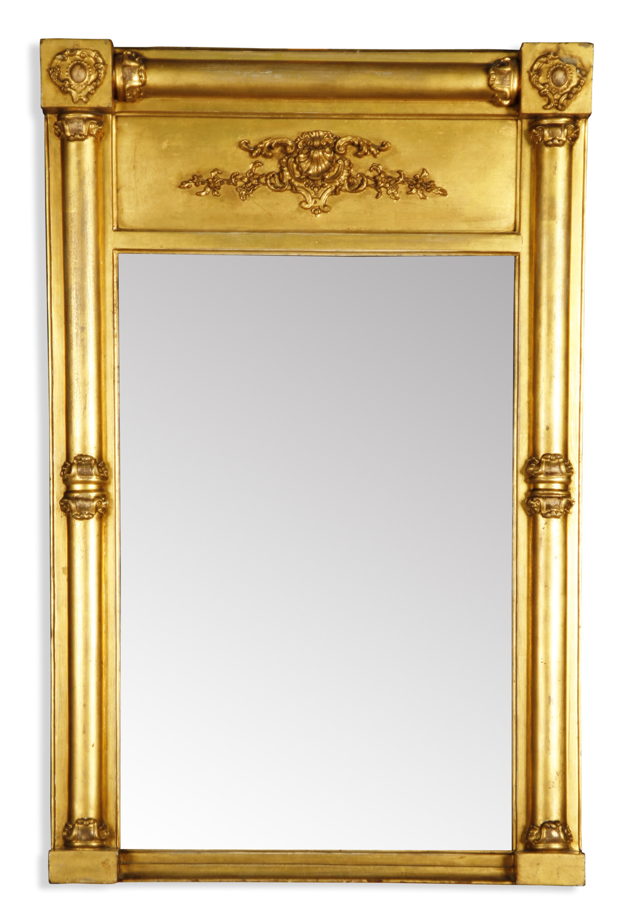 the shell and acanthus moulded panel above a rectangular mirror plate, flanked by columns