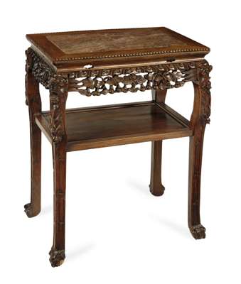 CHINESE HARDWOOD MARBLE TOPPED TABLE