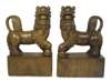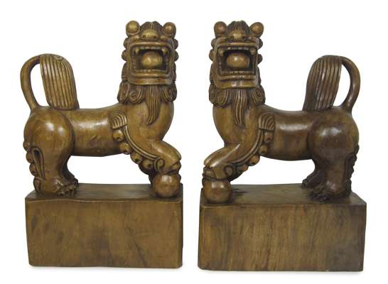 PAIR OF CARVED WOODEN MALE FU LIONS