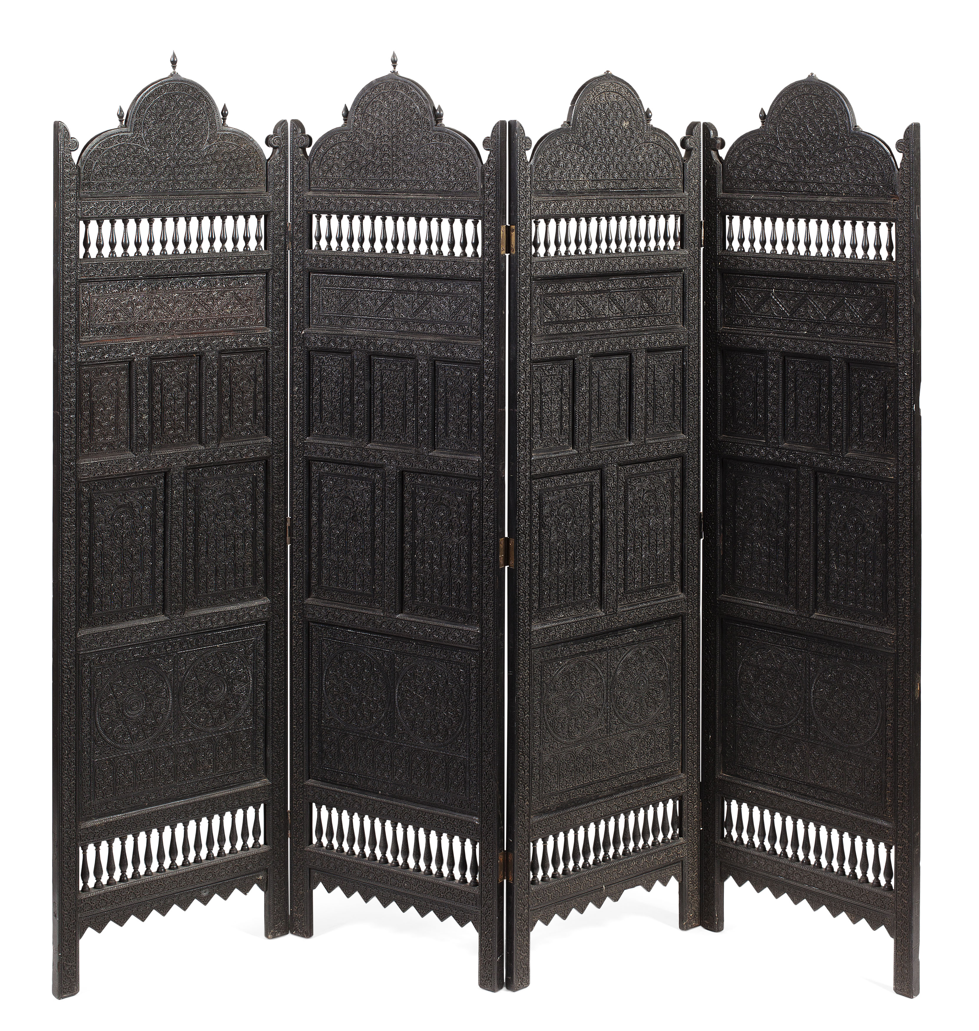 INDIAN FOUR PANEL CARVED HARDWOOD SCREEN