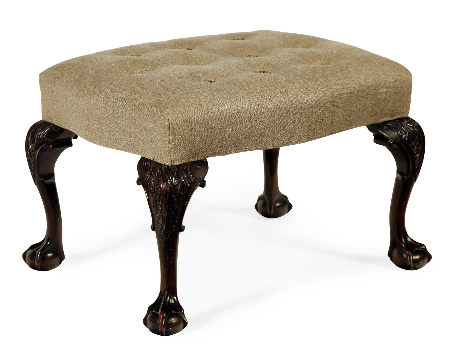 MAHOGANY AND BUTTONED LINEN FOOTSTOOL