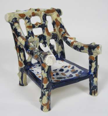 comprising of eight figures, of various designs, including some modelled with spill vases, and a castle shaped watch stand; together with a POTTERY CHAIR, POSSIBLY SCOTTISH EAST COAST, with polychrome decoration and a paper label, 19cm high (9)