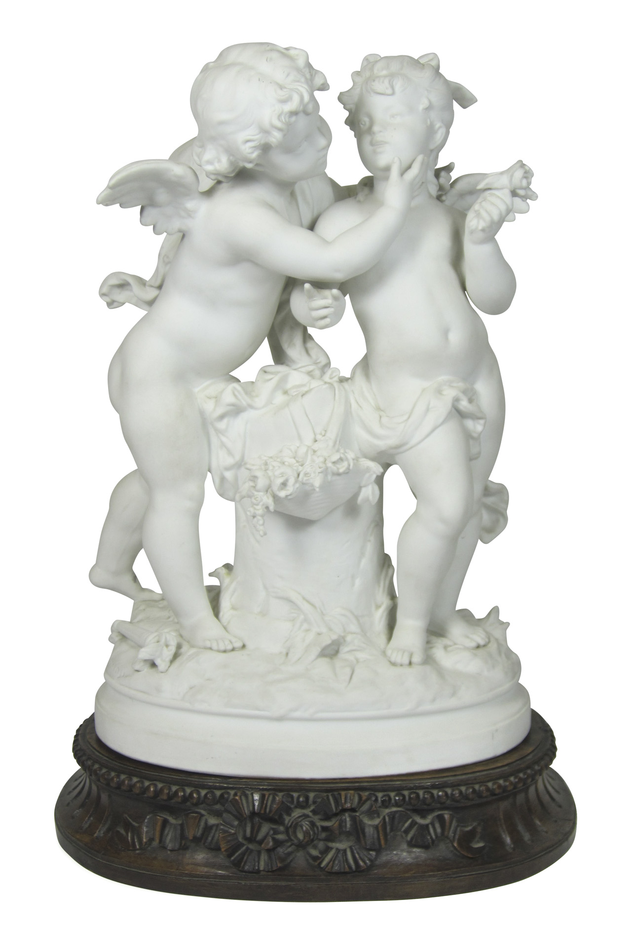 BISQUE FIGURE GROUP, SIGNED HIP. MOREAU