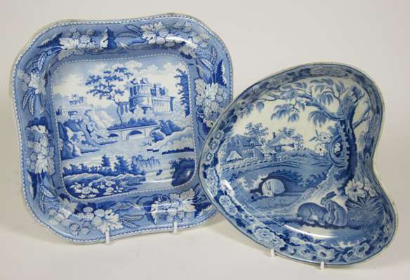 comprising of: three bowls, one with an under plate; four tureens (all lacking covers); a square shaped bowl; a footed rectangular dish; a small tureen and cover, with three associated stands; and three further shallow dishes, variously shaped (qty)