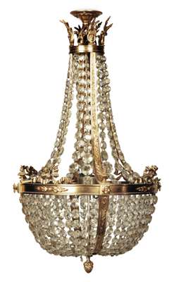 GILT BRASS AND CUT GLASS BASKET CHANDELIER