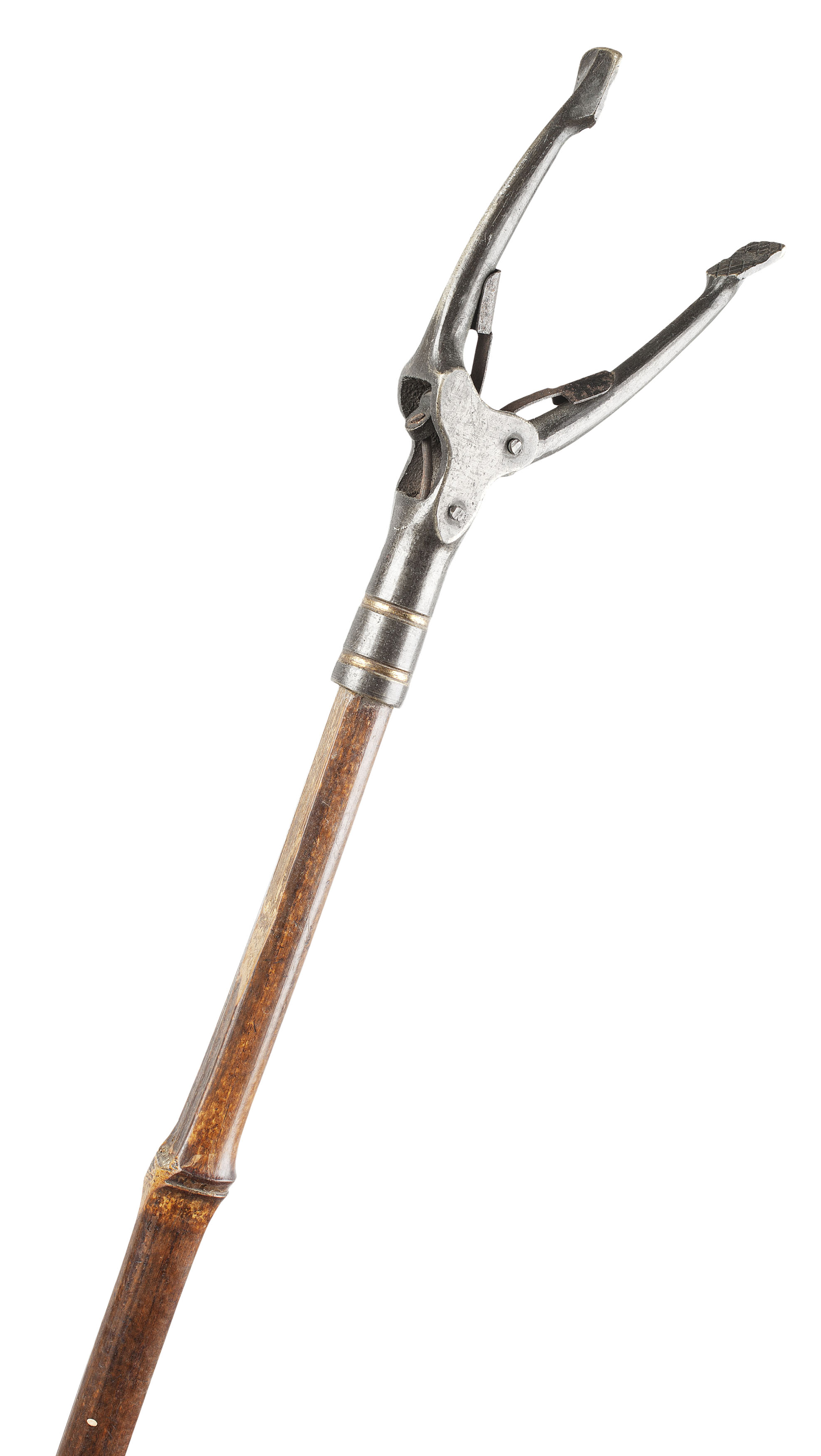 REGENCY BRASS MOUNTED BAMBOO LIBRARY BOOK GRAB