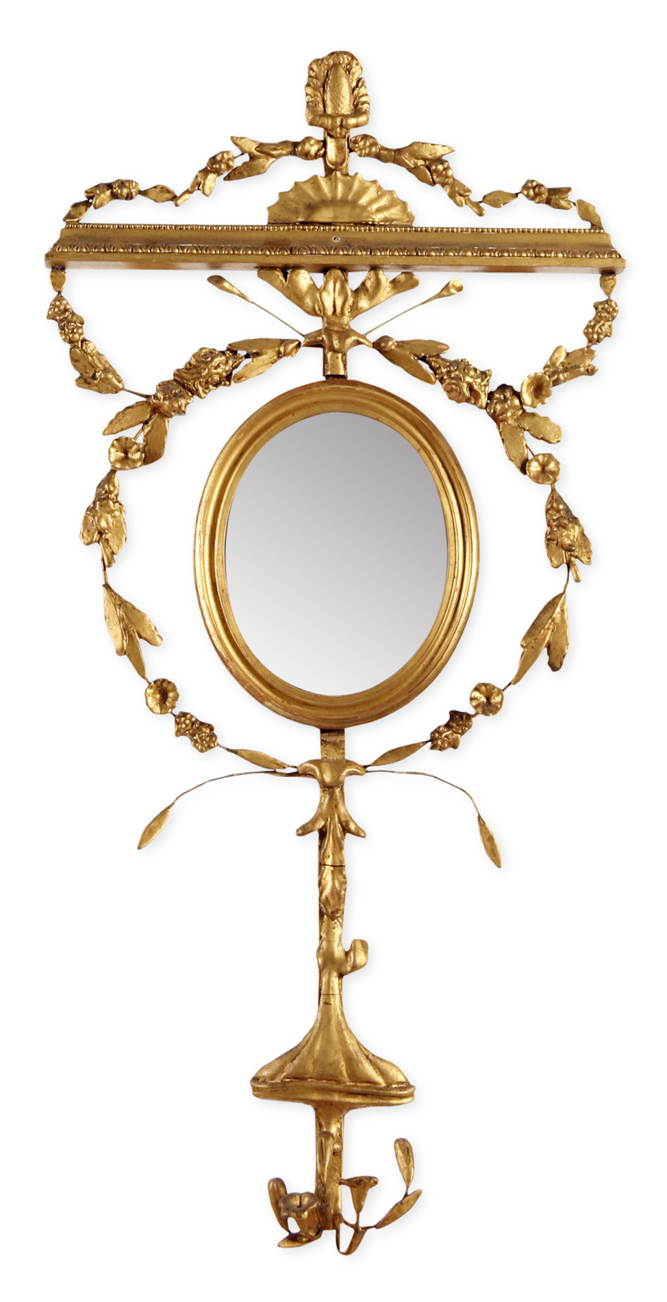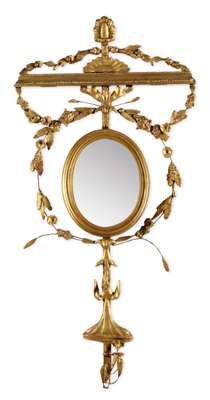the oval mirror plate within a moulded frame, surrounded by floral and foliate swags