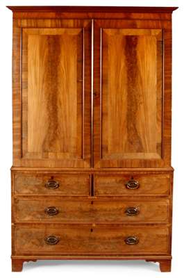 GEORGIAN STYLE FLAME MAHOGANY LINEN PRESS