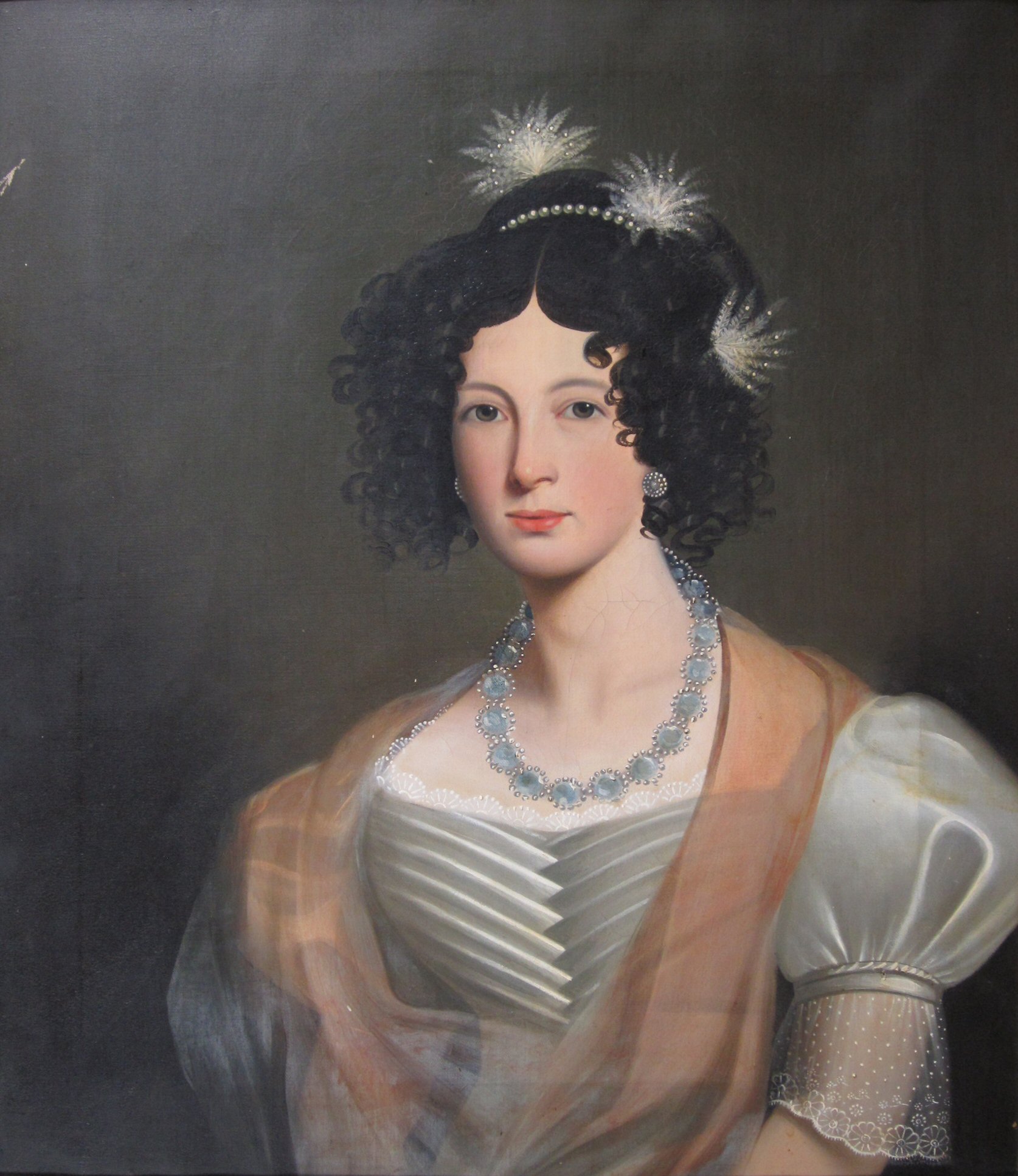 BUST PORTRAIT OF A LADY WEARING AN AQUAMARINE NECKLACE