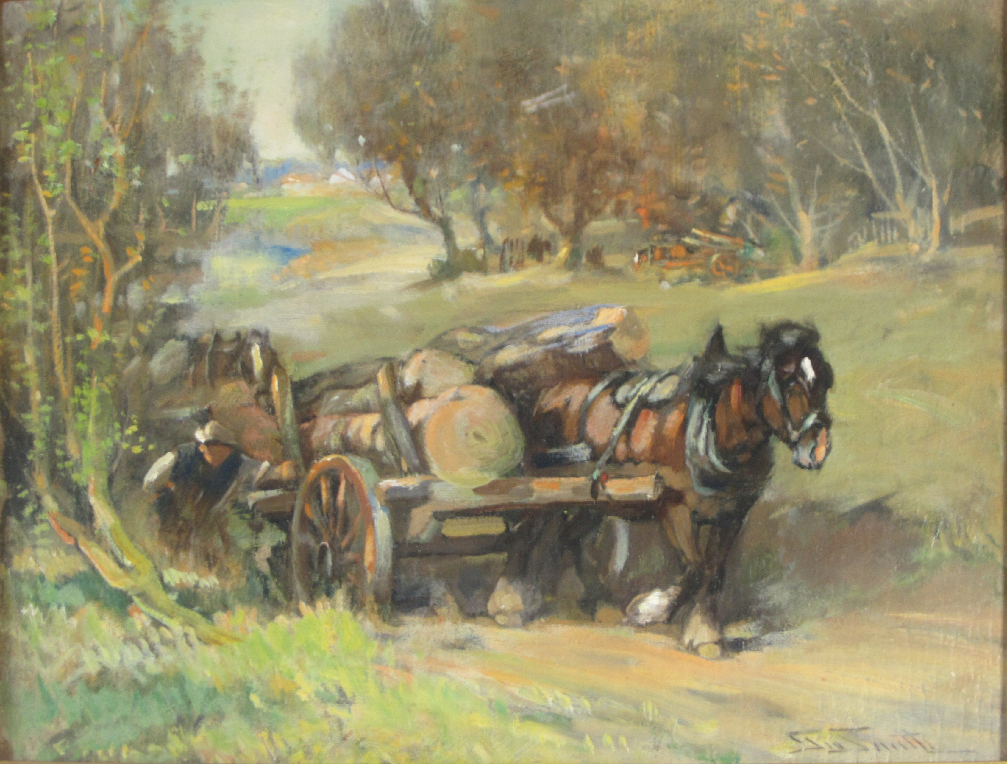 HORSE AND CART LOADED WITH LOGS