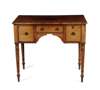 the rectangular top above a frieze drawer, flanked by deep drawers, raised on ring turned legs