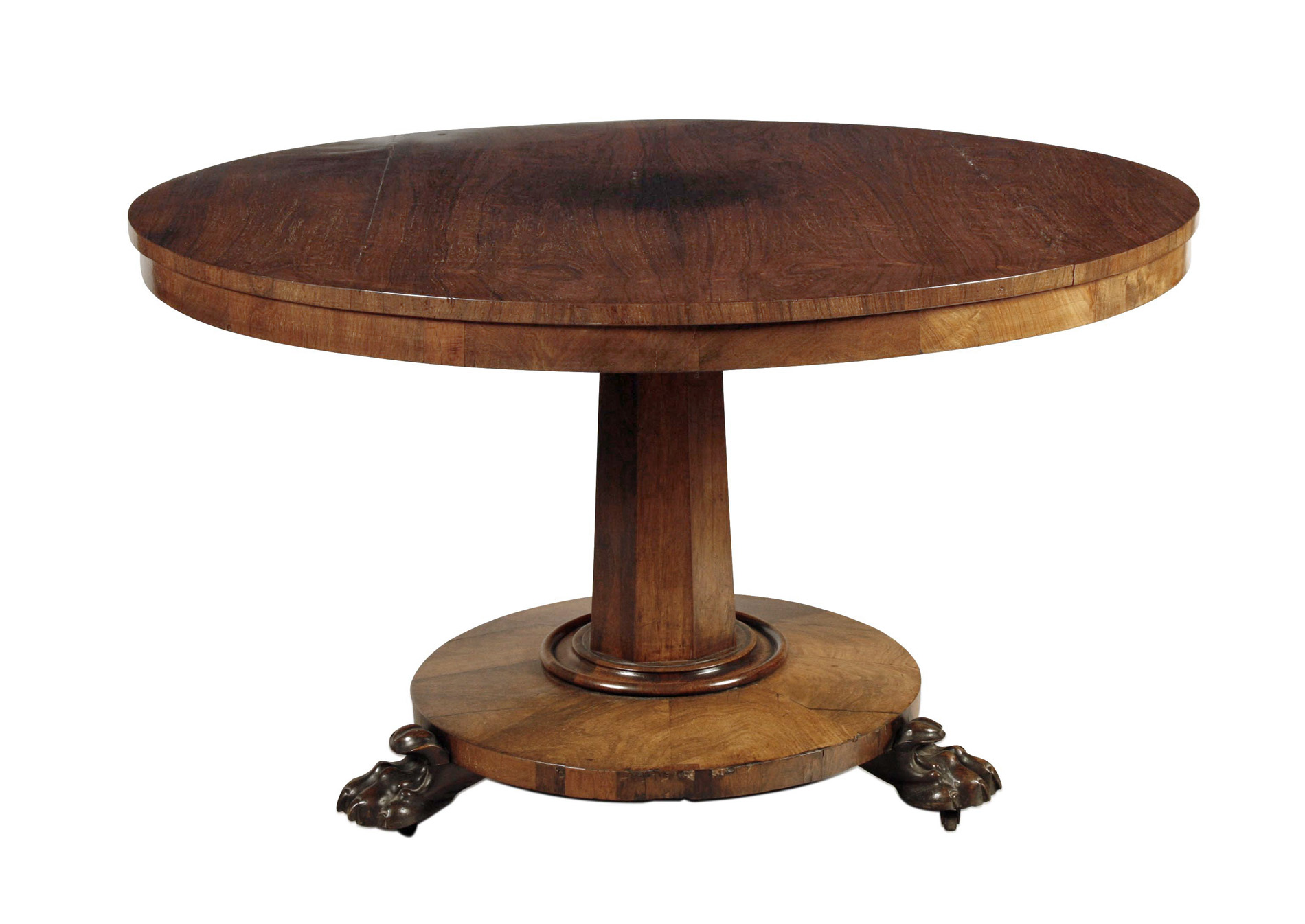 the circular top above an octagonal support, over a circular base raised on lion paw feet
