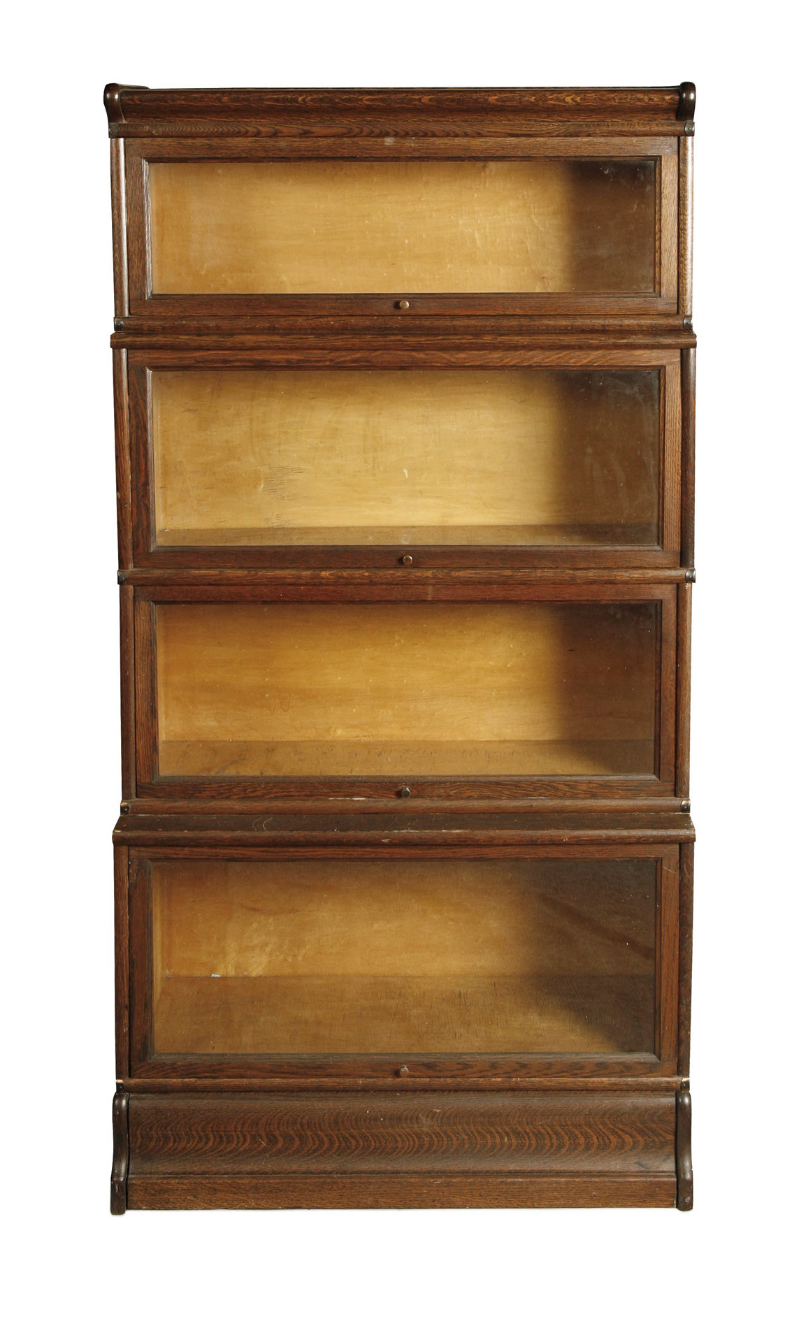 the moulded top above four graduated glazed sections, raised on a plinth base