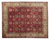 the red field with allover palmette and scrolling vine pattern, within cream palmette and scrolling vine border