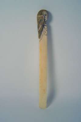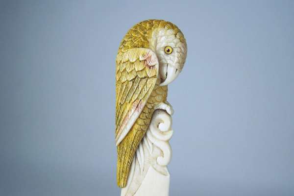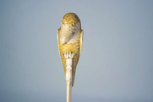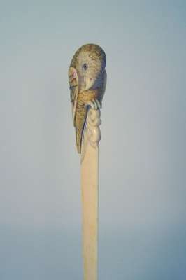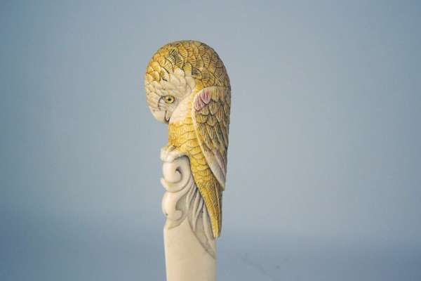 the scroll end surmounted by a stained ivory parrot
