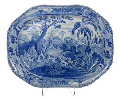 LARGE STAFFORDSHIRE BLUE AND WHITE 'INDIAN SPORTING SERIES' ASHET